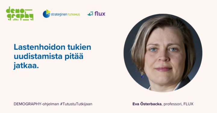 – Perheiden lastenhoitoratkaisut vaihtelevat Suomessa sosioekonomisen aseman mukaan. Matalan sosioekonomisen aseman perheet käyttävät kotihoidon tukea muita pidempään. Tämä koskee etenkin työttömiä äitejä, Eva sanoo.